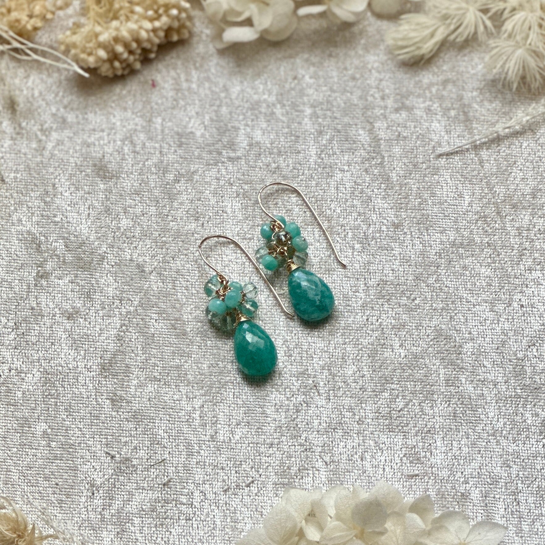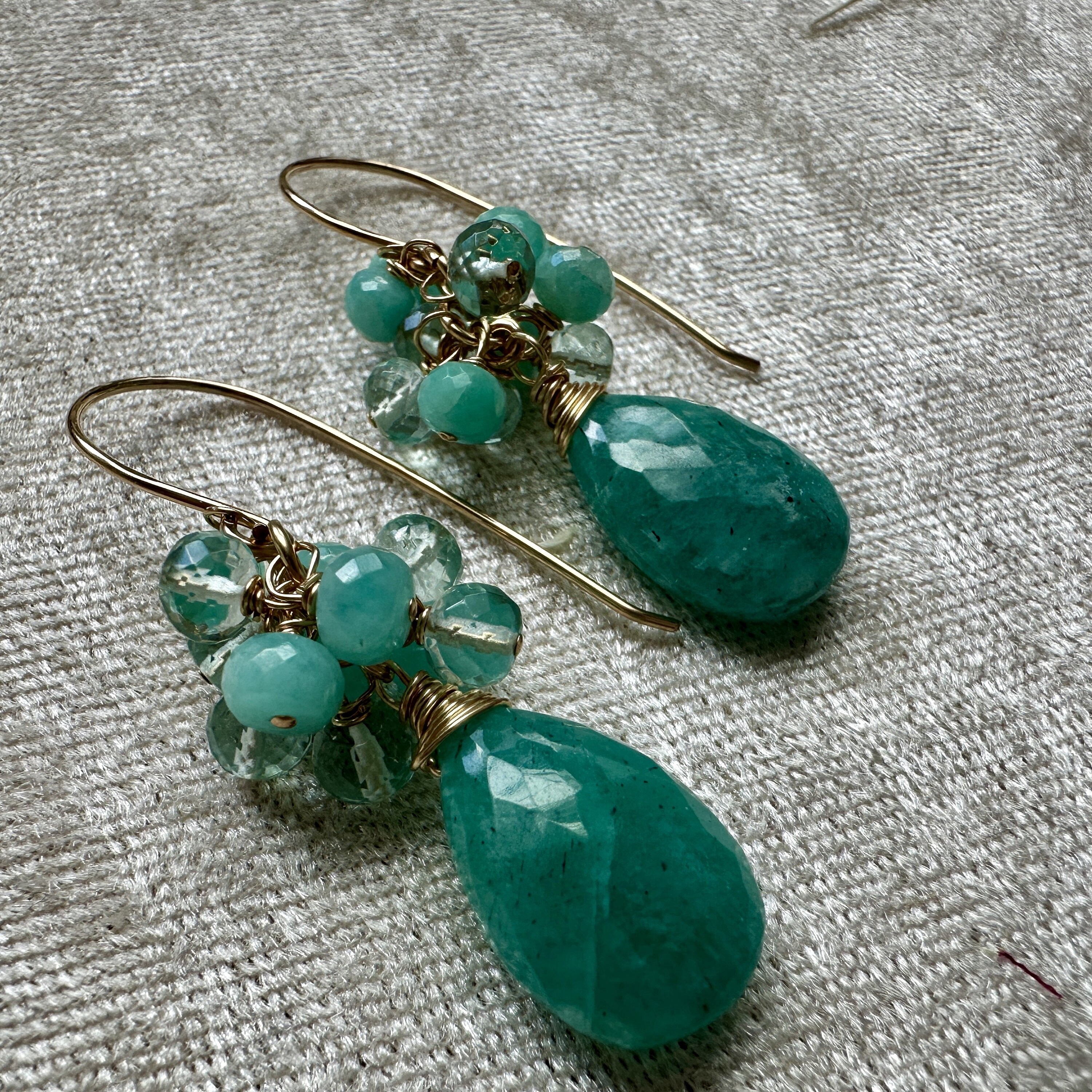 AAA Amazonite and Hydro Quartz Cluster Earrings
