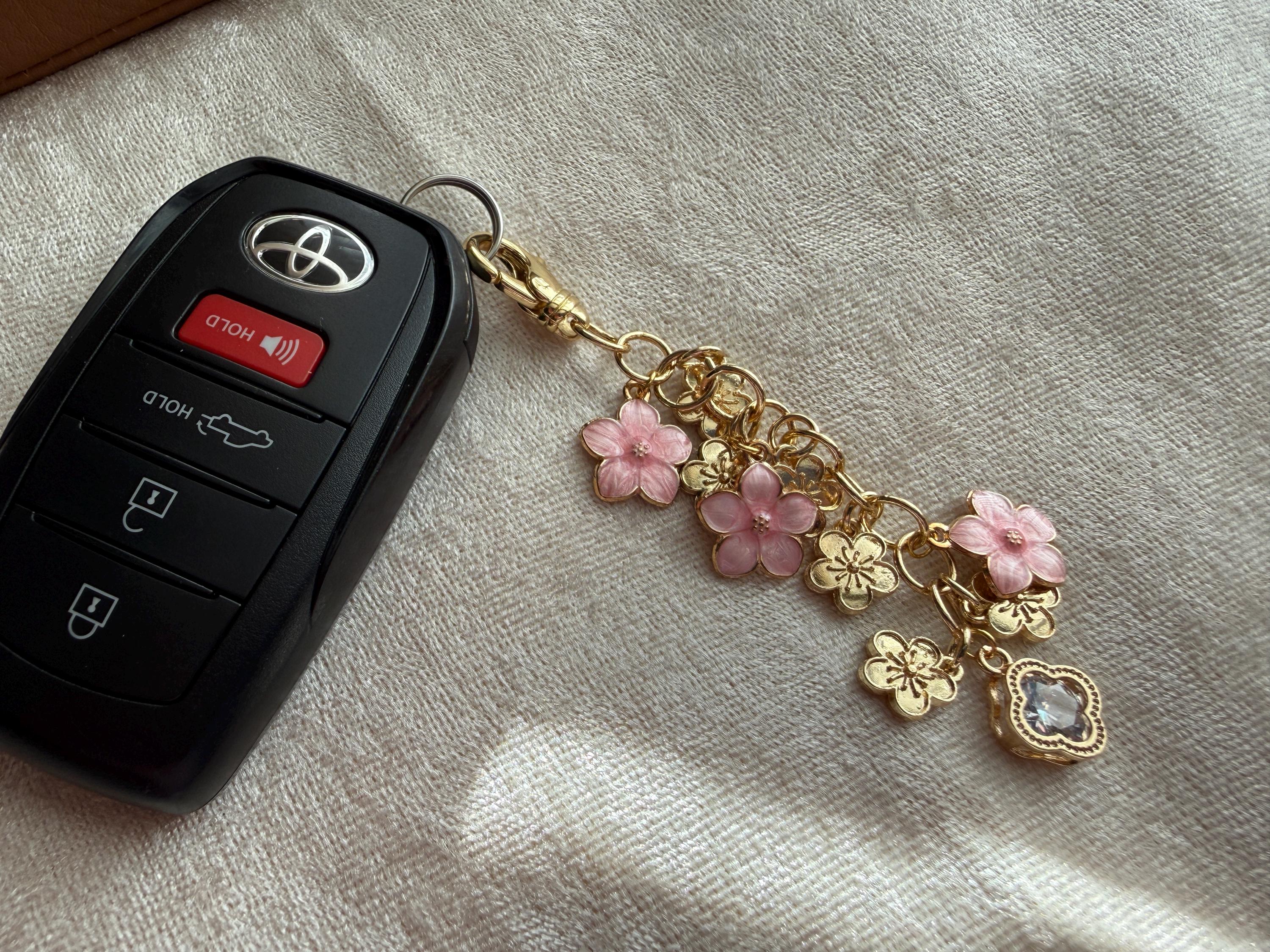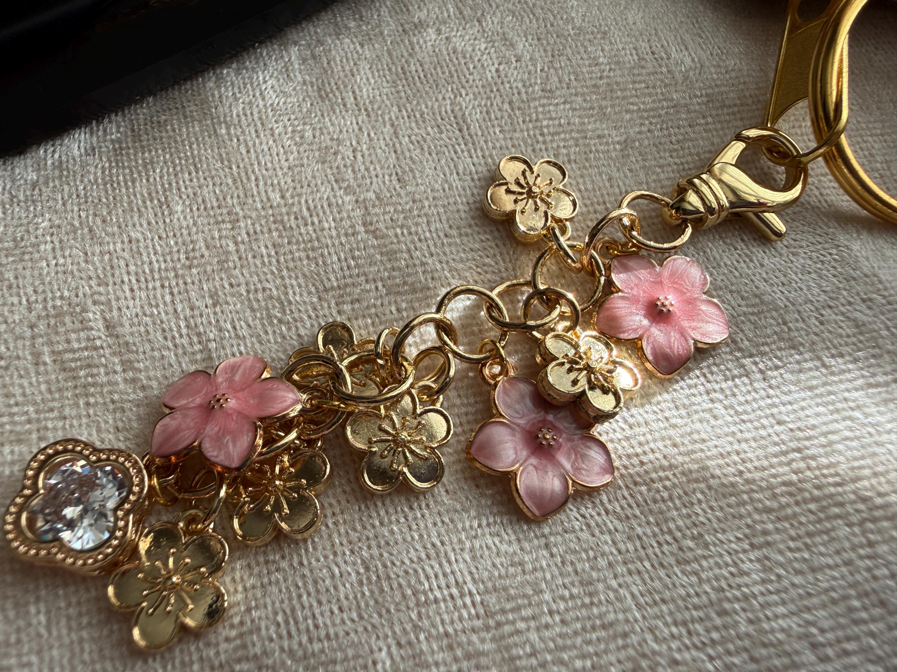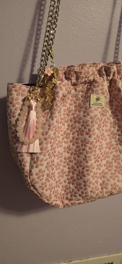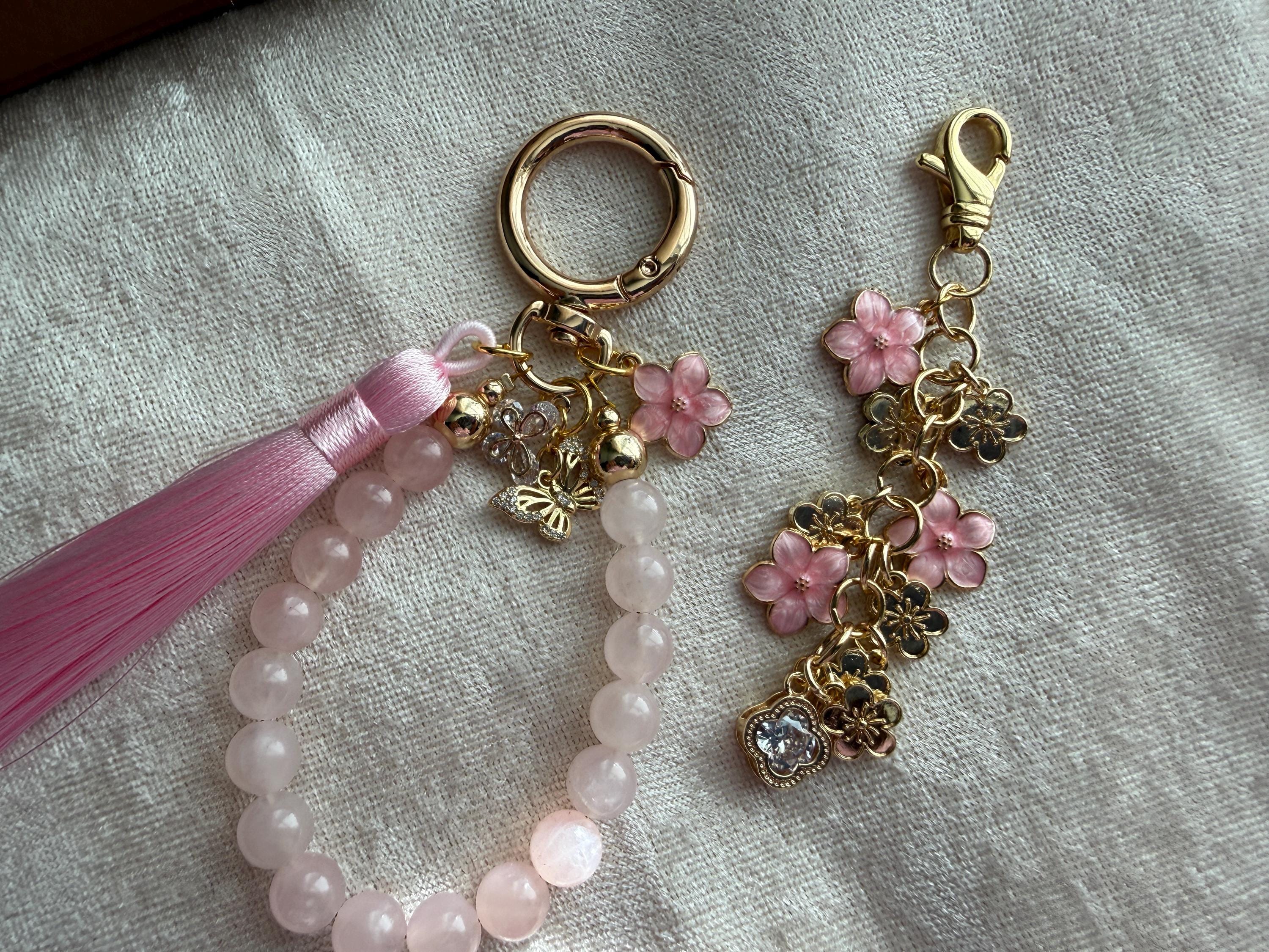 Add a touch of charm and sparkle to your purse, tote, backpack, or keys with this handcrafted gemstone purse charm. Made with Rose quartz beads, a silky matching tassel, and premium gold-tone hardware, this piece brings a soft, feminine elegance to any accessory.